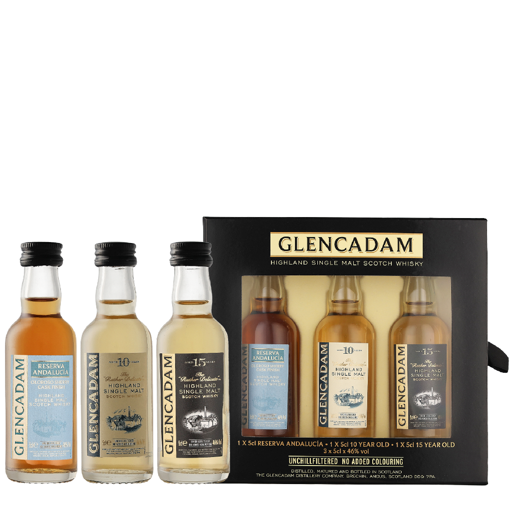 Glencadam Mini Tripack Andalucia 0.15 liter Whisky + GeschenkverpakkingGlencadam Mini Tripack Andalucia 0.15 liter Whisky + Geschenkverpakking